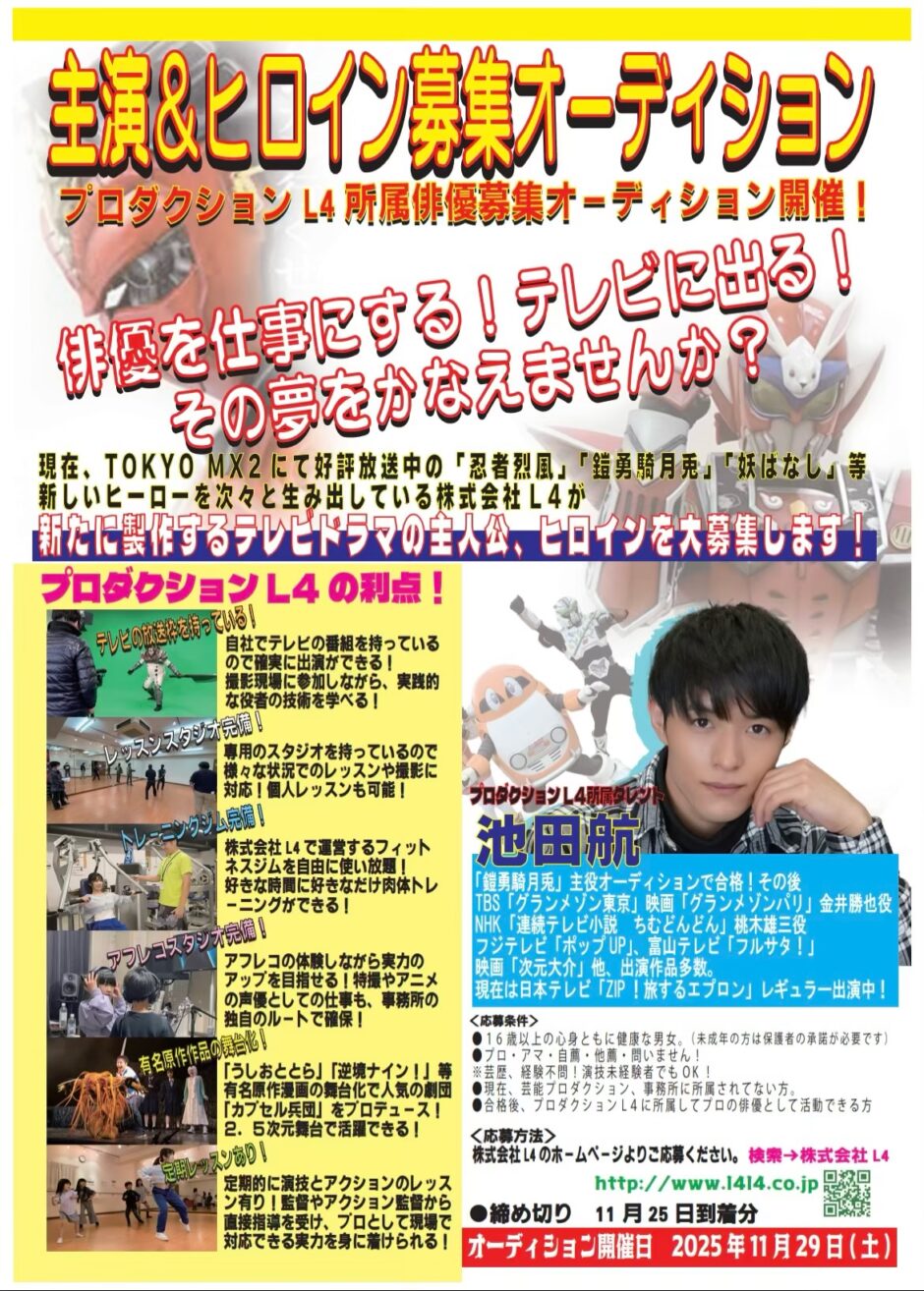 プロダクションL 4が制作する新番組の主人公&ヒロインを募集致します。
