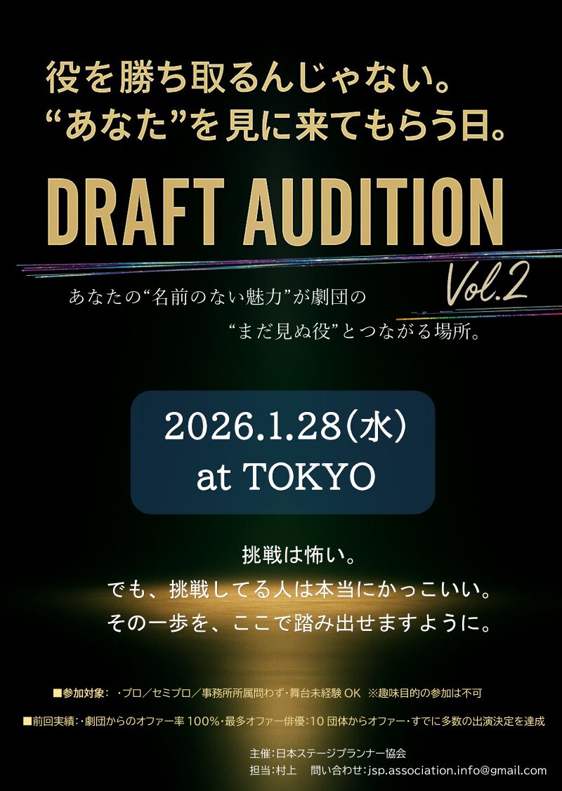 この度、前回のドラフトオーデションVol.1が好評だったためVol.2を開催することになりました。