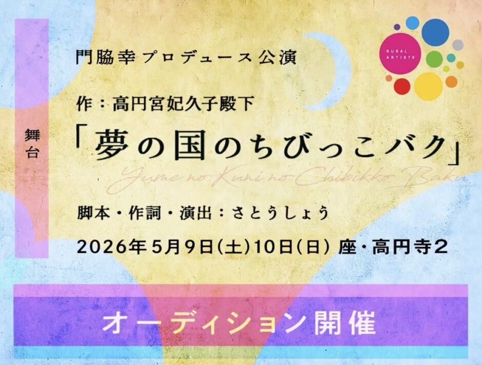 5月公演 座・高円寺 歌と舞踊とお芝居の和舞台「夢の国のちびっこバク」出演者・振付師募集