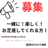 | 2025-12-07 NEW! | 舞台 | 東京 | 劇団HOUJU第3回公演「絆〜ダークサイド・ムーン〜」出演者募集! |